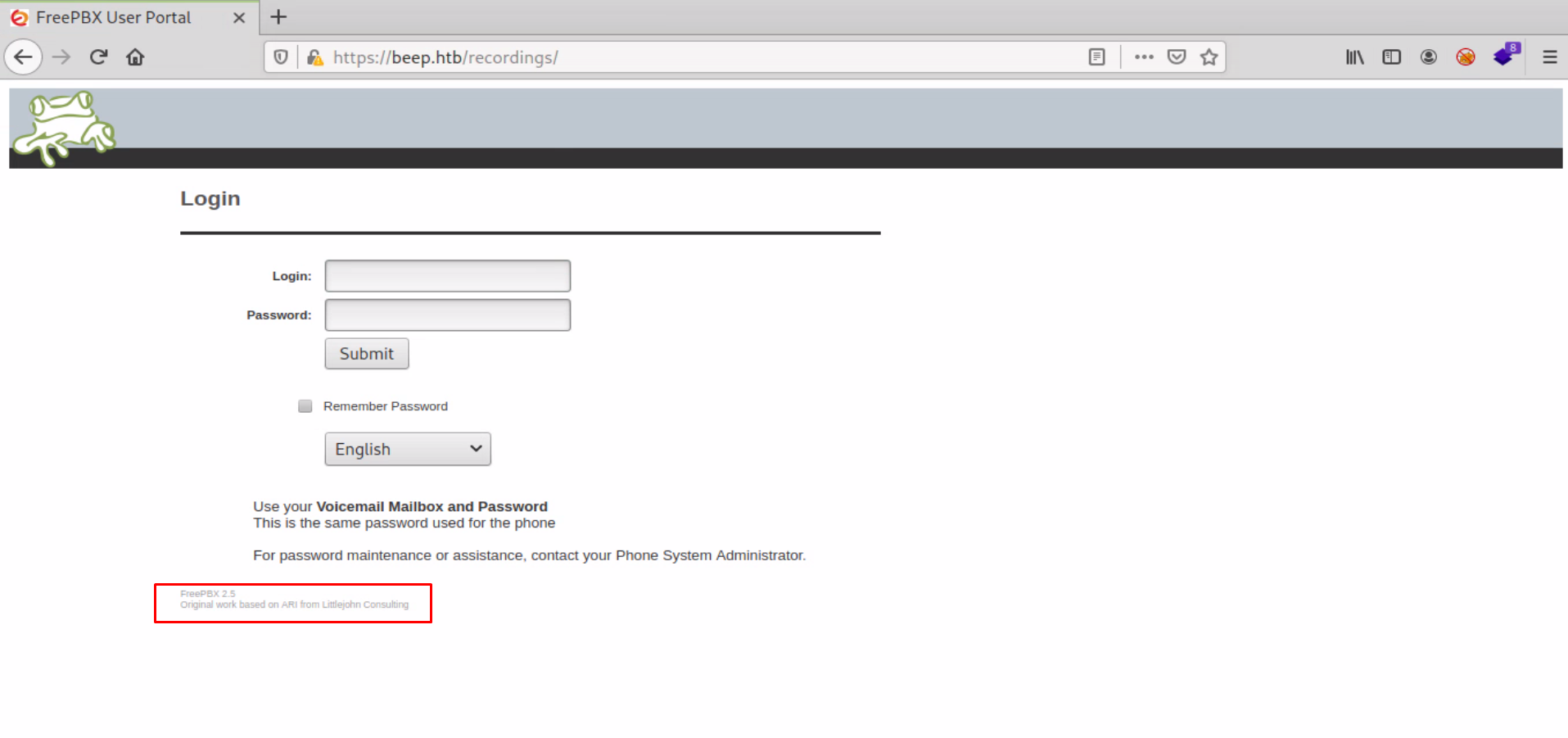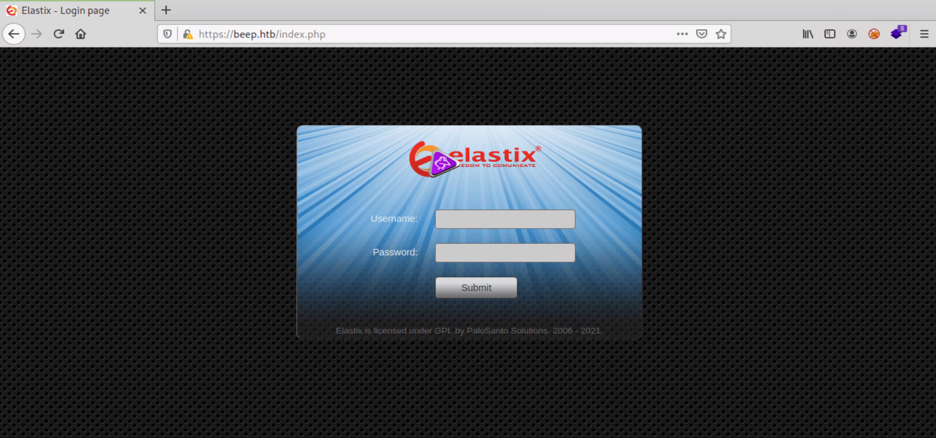 http://beep.htb [302 Found] Apache[2.2.3], Country[RESERVED][ZZ], HTTPServer[CentOS][Apache/2.2.3 (CentOS)], IP[10.129.253.225], RedirectLocation[https://beep.htb/], Title[302 Found]