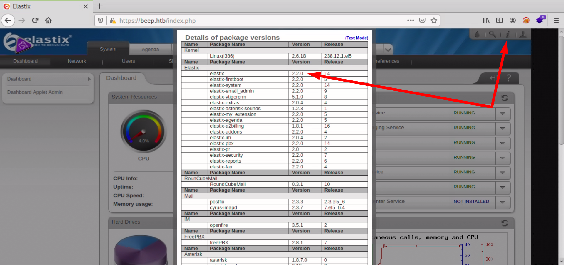 Lo unico que necesitamos para realizar la explotacion es una extension valida que podemos encontrar en el dashboard de elastix