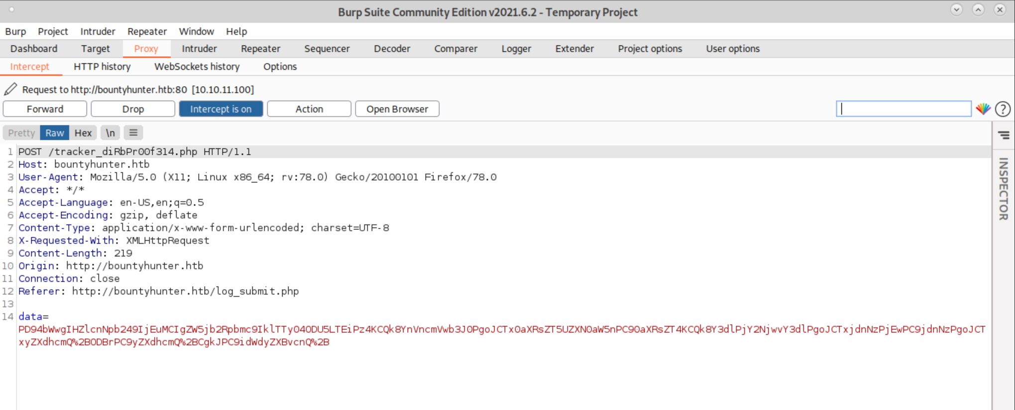 http://bountyhunter.htb/portal.php y analizar la request desde BurpSuite