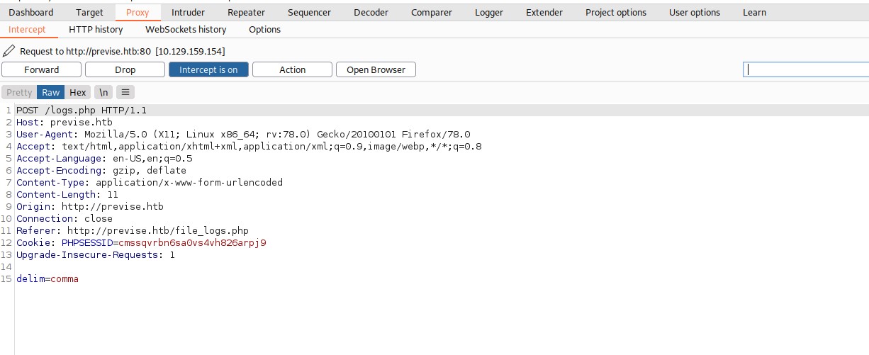 Vamos a intentar atacar al php logs.php teniendo clara la informacion de la que disponemos hasta el momento. Para esto, analizamos el POST con burp y volvemos a curl para inyectar comandos de sistema.