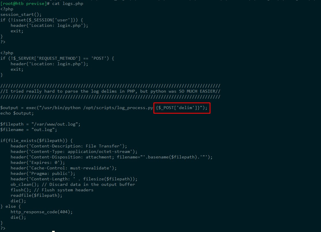[root@htb previse.htb]# for i in $(cat phpfiles.txt);do curl -so $i http://previse.htb/$i;done